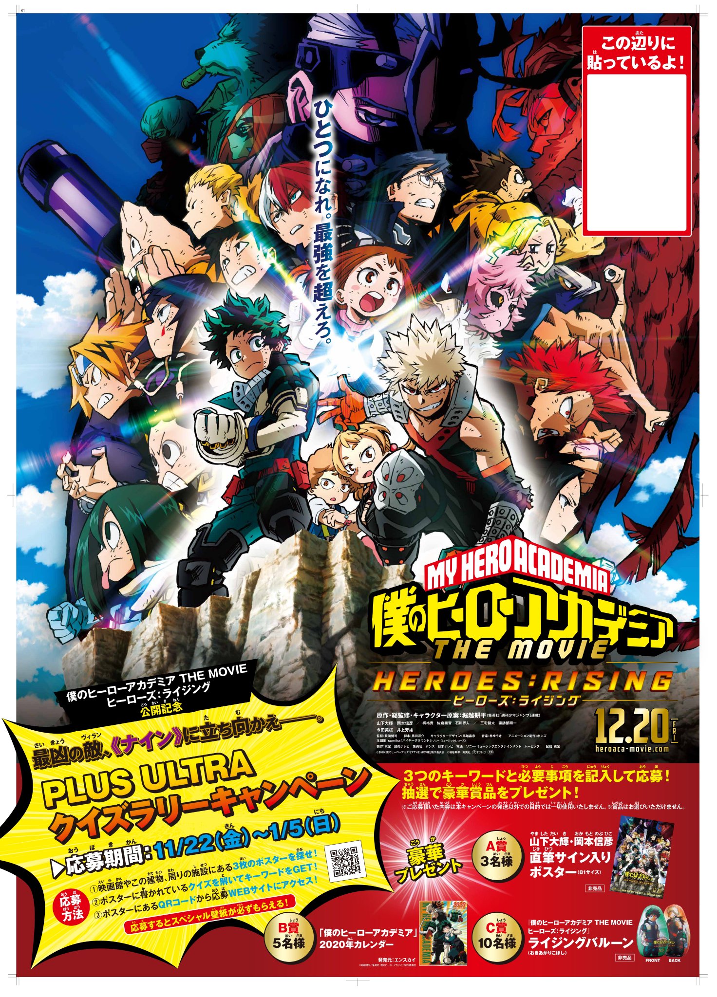 Usシネマ木更津 公式 僕のヒーローアカデミア The Movie ヒーローズ ライジング 公開記念 Plusultra クイズラリーキャンペーン 実施中 イオンモール木更津 館内3か所にある ヒロアカ ポスターを探して キーワードを集めてwebで応募